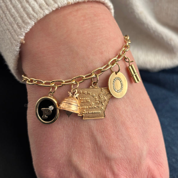 Charmco's own pill charm can be engraved with your favorite prescription! Whether you need a "happy" or "relaxing" pill, we have the golden dose. This 14k pill charm is guaranteed to put a smile on your face and makes a great gift.