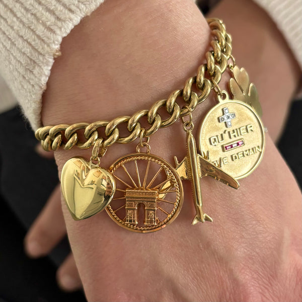 This vintage disc features the Place Charles de Gaulle historically known as the Place de l'Étoile which features the Arc De Triomphe at the center. This beautiful vintage 18k Parisian charm celebrates your love for the City of Lights.