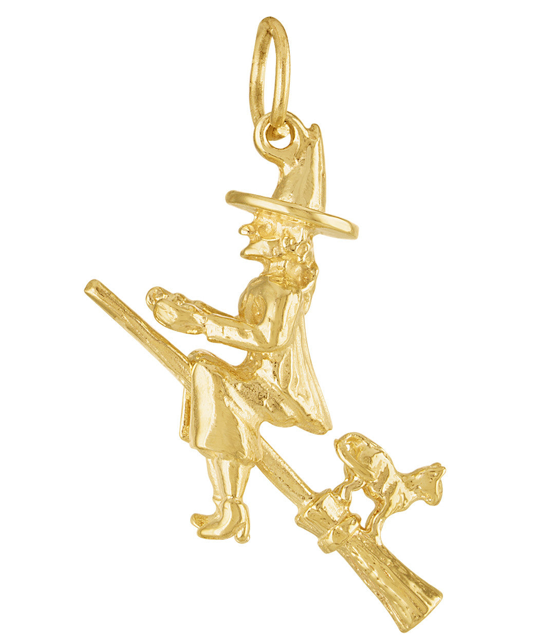 For those who like their Halloween with a bit of magic and spellwork, the Witch Hat Charm is your signature piece. It's giving Sabrina, Hermione, Sally and Gillian Owens, and the Sanderson Sisters. Personalize it with your name, a spell, or a secret message. Haven't we all wished we could take to the sky and fly under the full moon? The Witch on a Broom Charm captures the free and fearless feeling we all yearned for as kids watching Hocus Pocus. Lastly, the Spooky Cat Charm is your faithful familiar, sleek and mysterious, ready to prowl through the night at your side. It even features glowing eyes to mimic the ones you've caught staring at you through the trees on old Hallow's Eve.