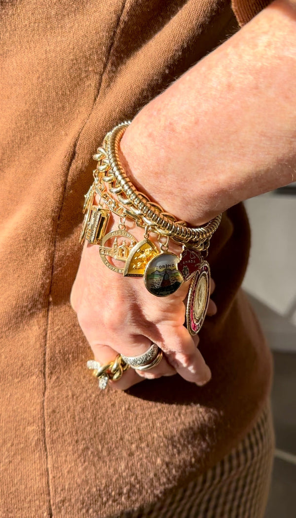 Vintage Large Gem Set Machu Picchu 18K Gold Charm