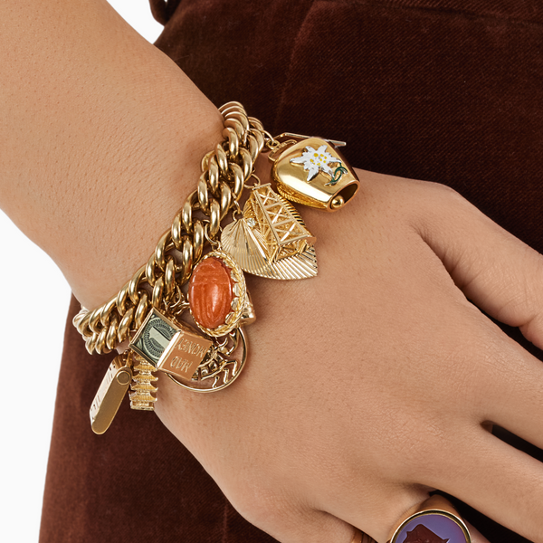 Vintage Fine Double Link 14k Gold Charm Bracelet