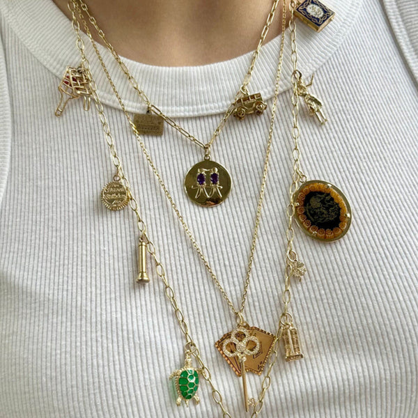 Cabochon Gem Set Lovebirds 14k Gold Charm