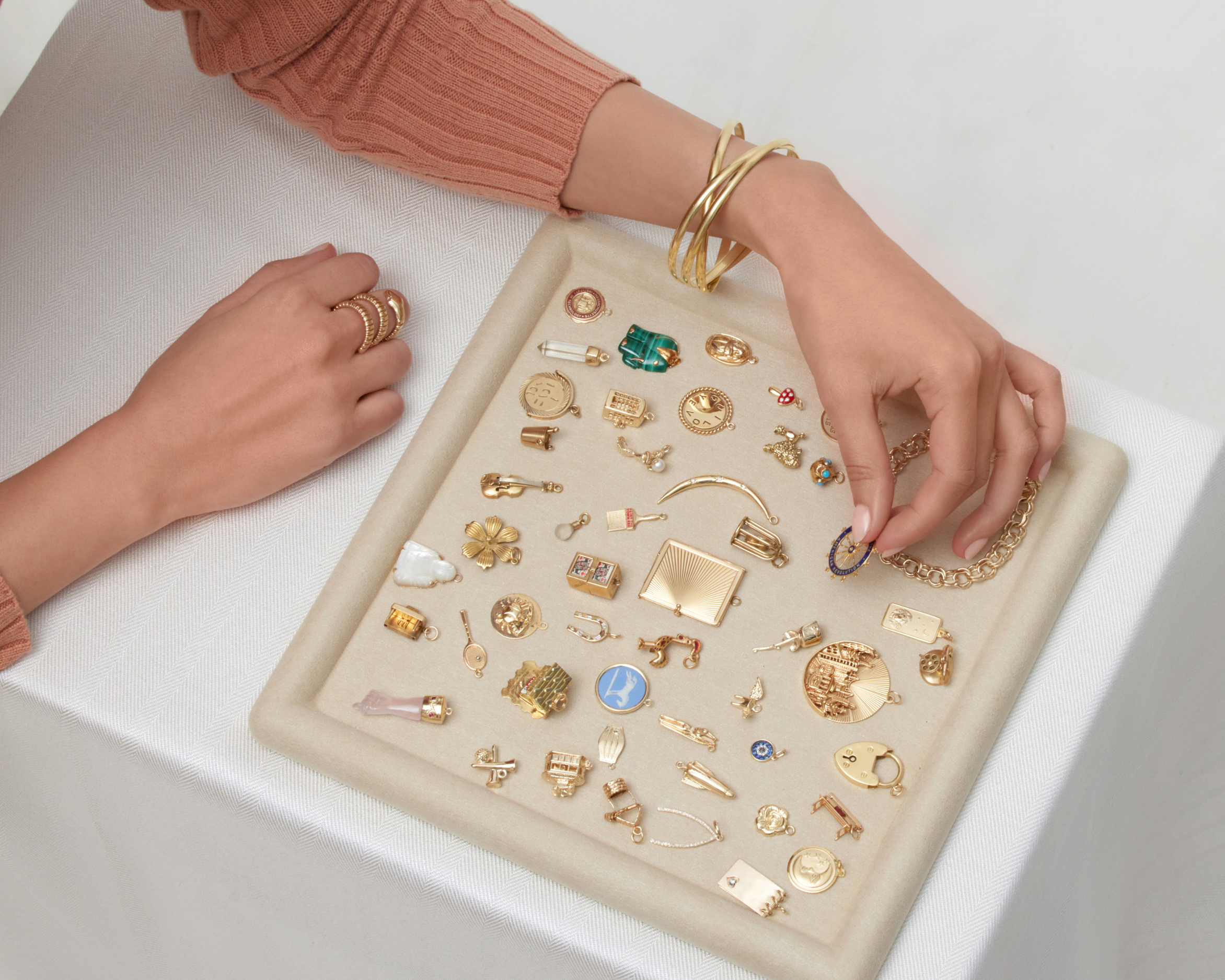 Vintage Fine Double Link 14k Gold Charm Bracelet