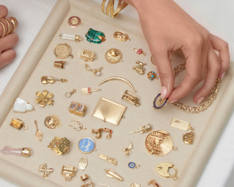 Vintage Fine Double Link 14k Gold Charm Bracelet