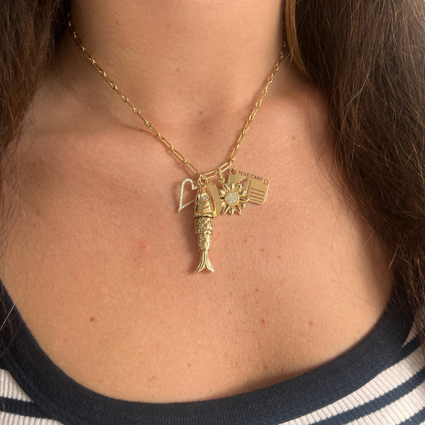 Larger Movable Fish with Diamond Eyes 14k Gold Charm