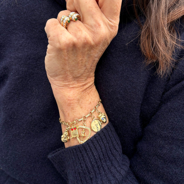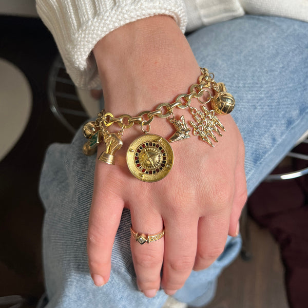 Vintage Gemstone Champagne Bucket 14k Gold Charm