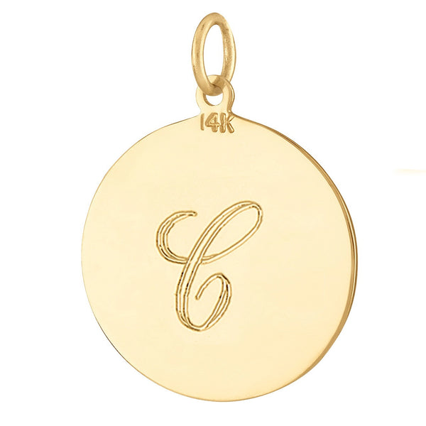 Monogram Engine Turned Disc 14k Gold Charm