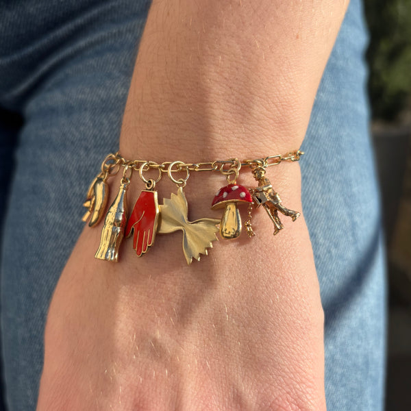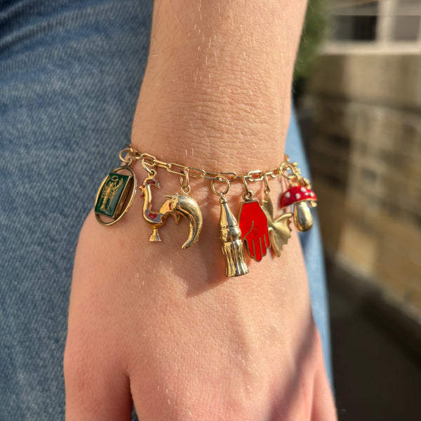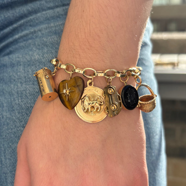 Vintage Fine Double Link 14k Gold Charm Bracelet