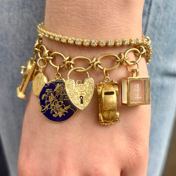 Vintage Twisted Mariner Link 18k Gold Charm Bracelet