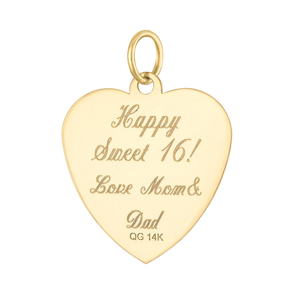 Extra Large Engine Turned Heart Engravable 14K Gold Charm
