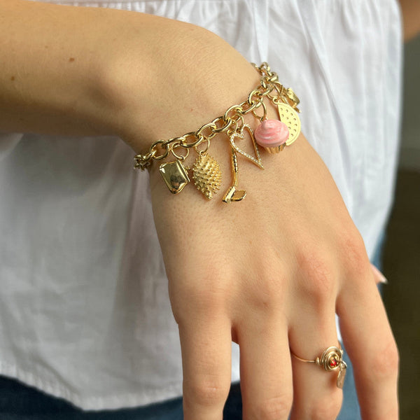 Vintage Mini Enamel Love Rooster 18k Gold Charm