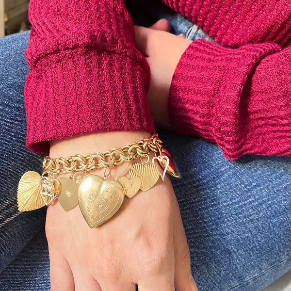 Extra Large Diamond Halo Engine Turned Heart 14K Gold Charm