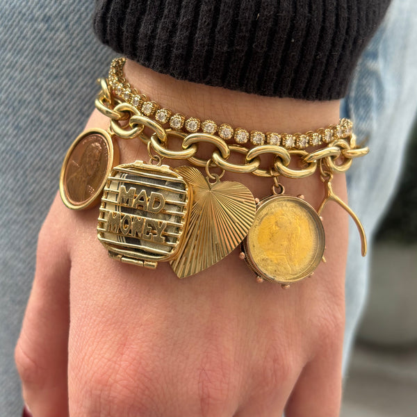 Vintage Fine Double Link 14k Gold Charm Bracelet