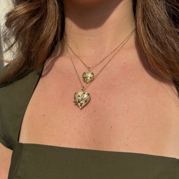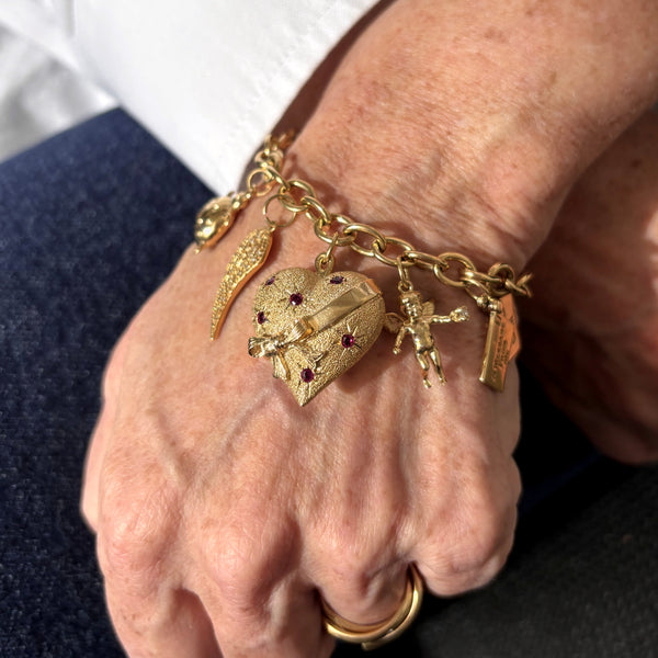 Vintage Dankner Larger Ruby Wrapped Heart 14k Gold Charm
