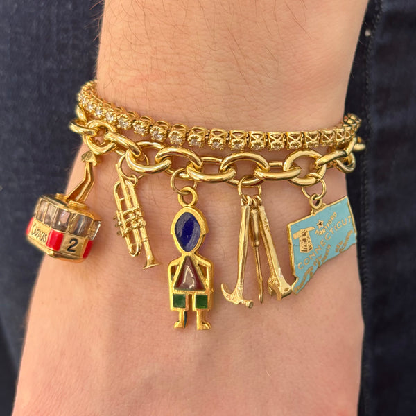 Vintage Large Gem Set Machu Picchu 18K Gold Charm