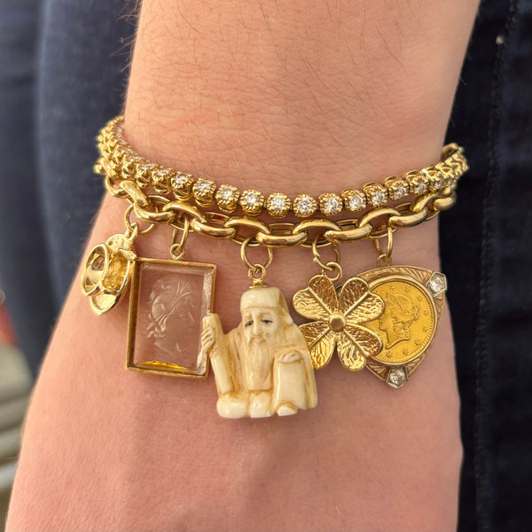 Vintage Two Tone Diamond "Mom" 14k Gold Charm
