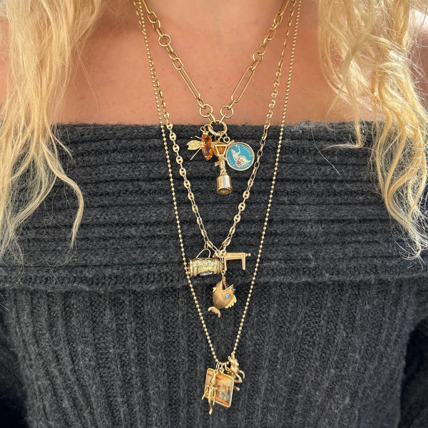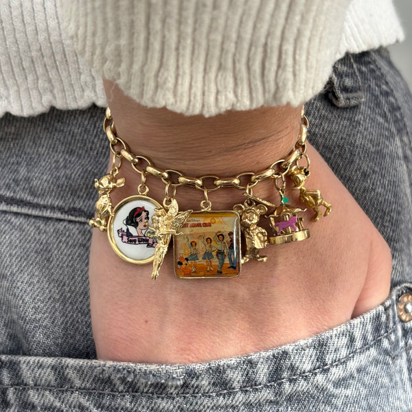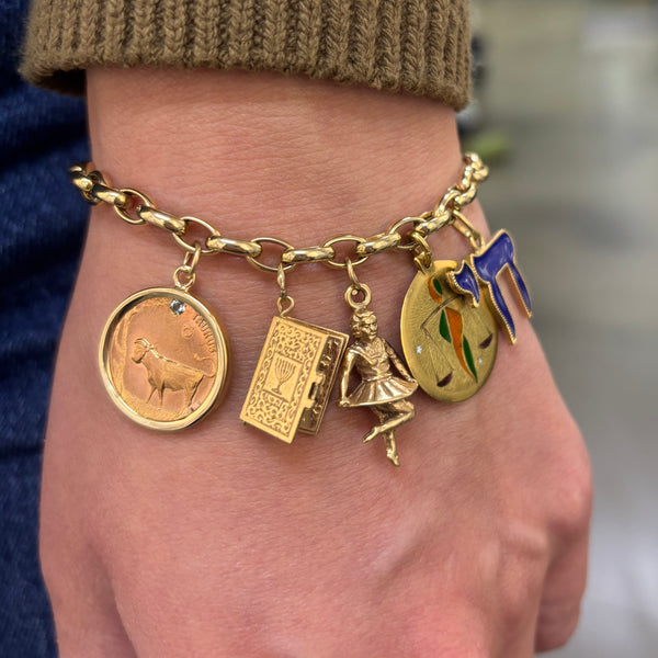 Vintage Fine Double Link 14k Gold Charm Bracelet