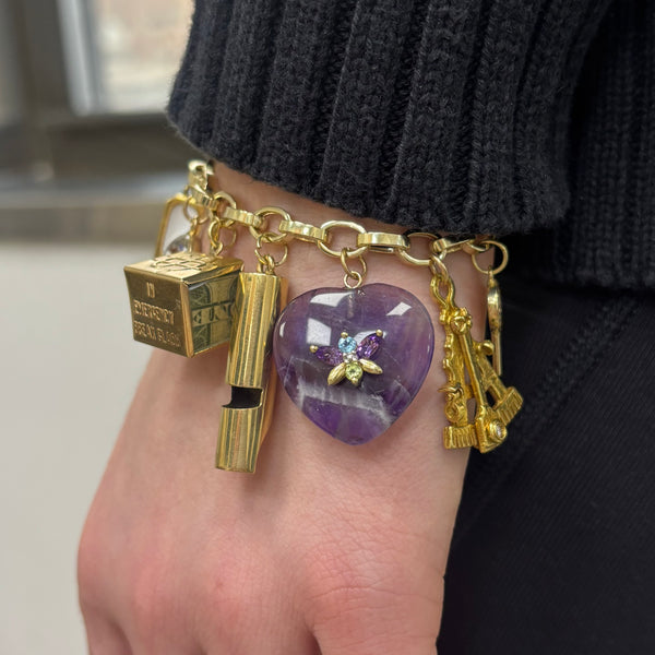 Vintage Amethyst Heart with Butterfly 14k Gold Charm