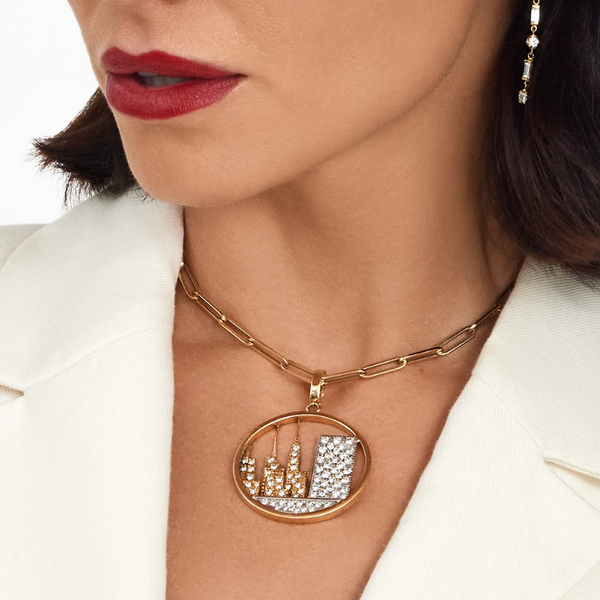 Vintage Diamond New York City Skyline Disc 14K Gold Charm