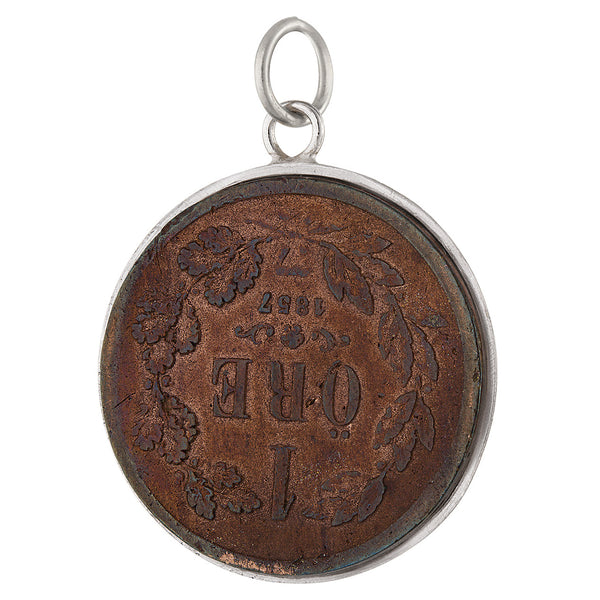 Vintage Denmark Frederick VII Copper Coin with Diamond 14k Gold Charm