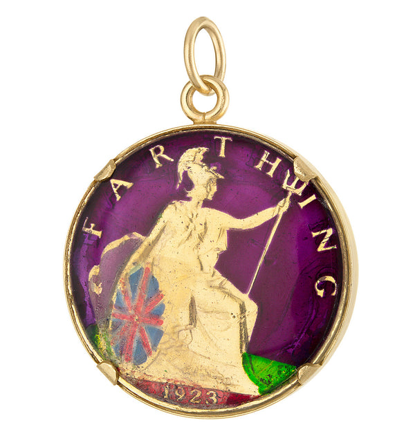 Vintage George V Farthing Enamel Coin 14K Gold Charm